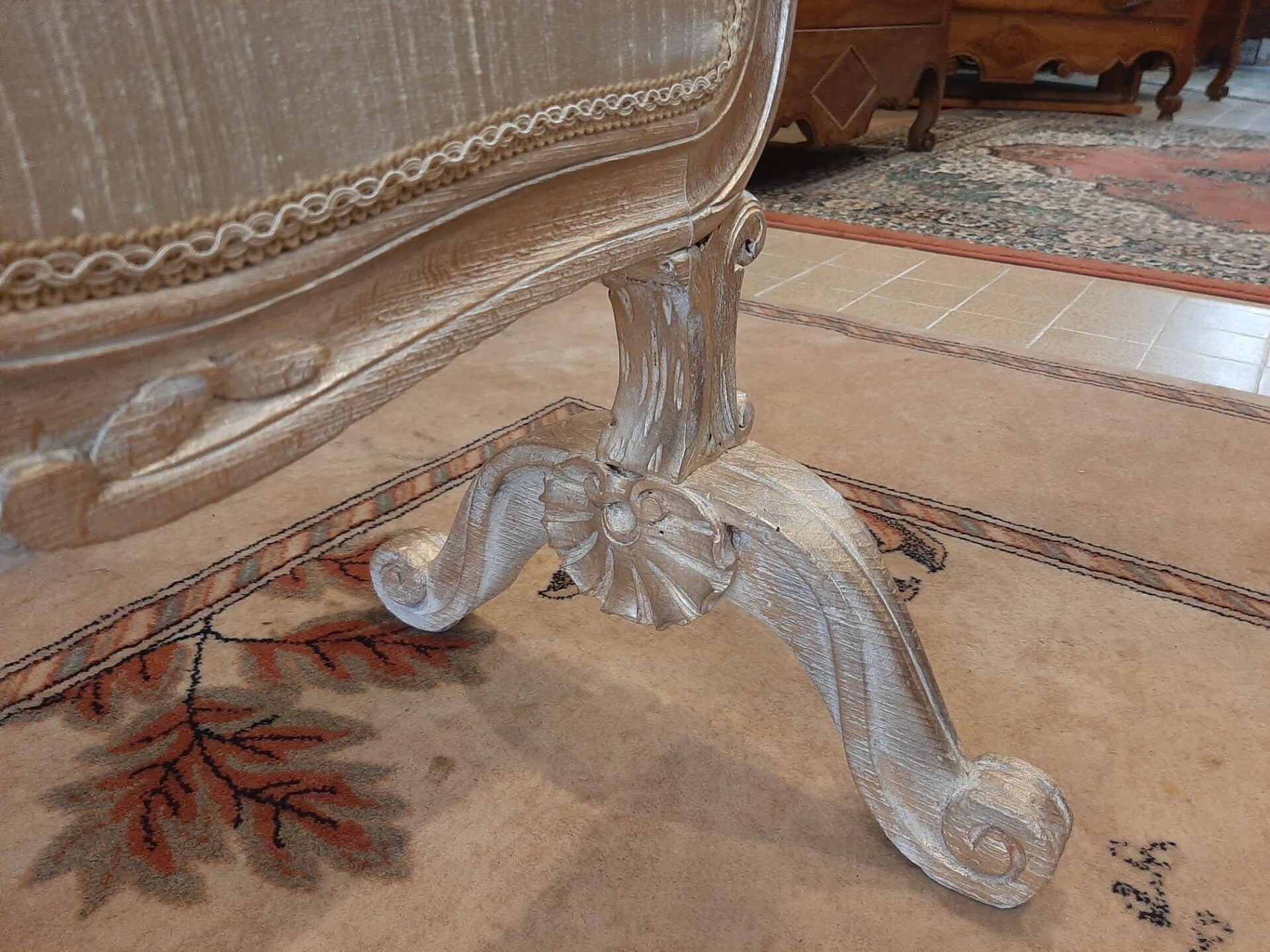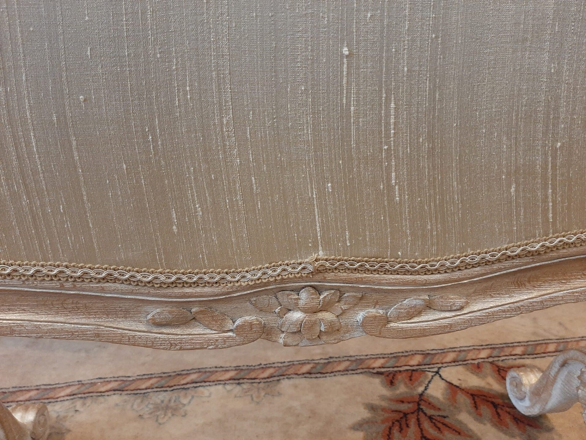 Paneel in einem schwungvollen Rahmen, in Wildseide gekleidet, auf vier Beinen ruhend, die in Voluten enden.