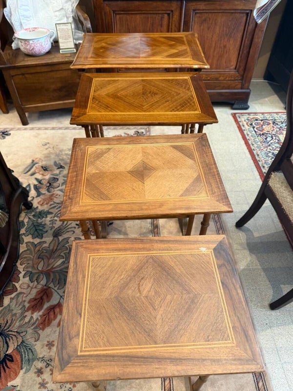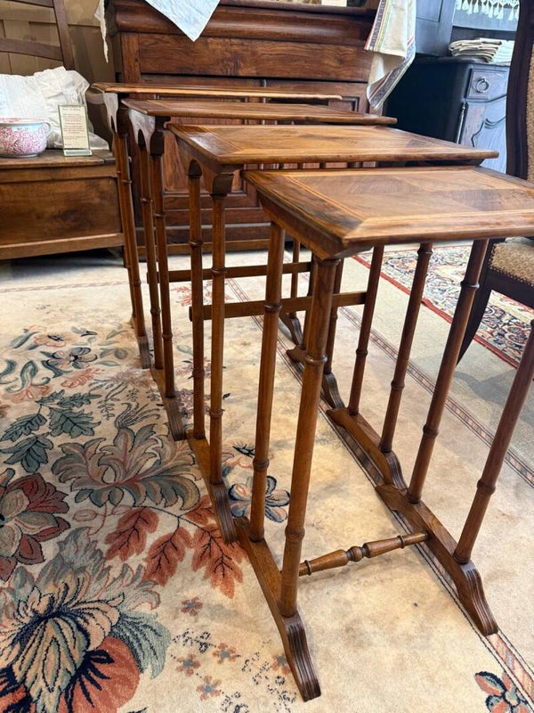 Великолепный набор гнездовых столов 19 века, выполненный из тонко обработанного дерева и украшенный маркетри.