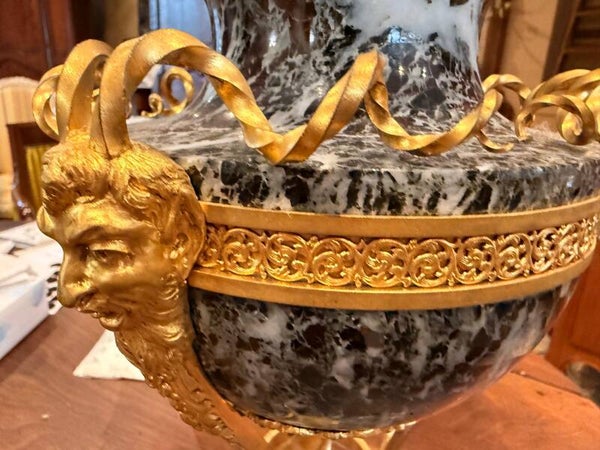 Paire De Cassolettes Réversibles Louis XVI en Bronze Doré et Ciselé, Marbre - XIXe