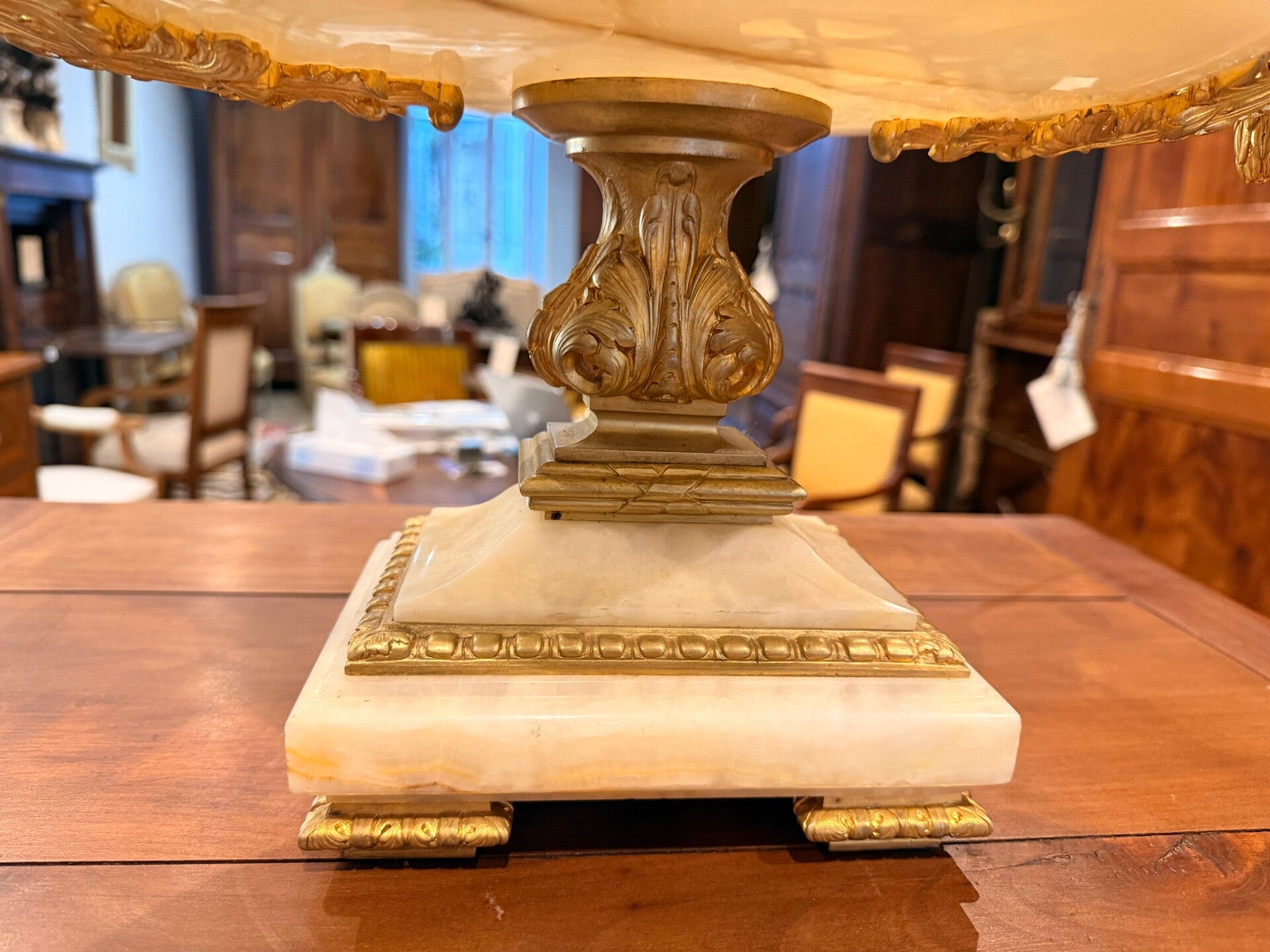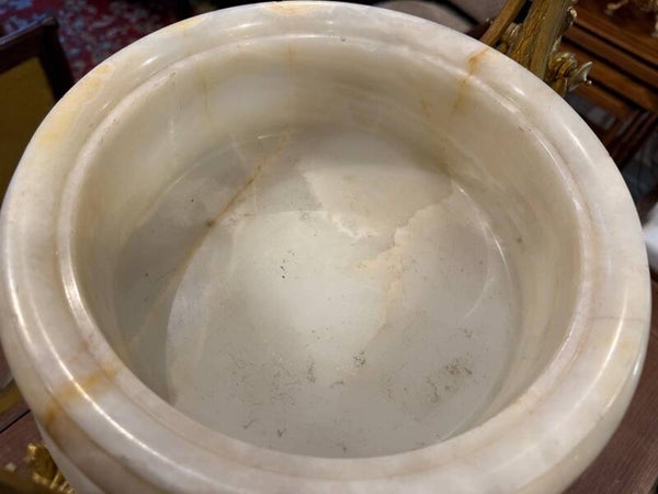 Grand Cratère En Centre De Table en Onyx Blanc, Bronze Ciselé Doré - 1850