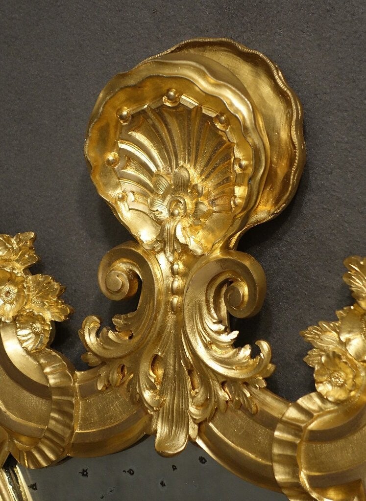 En Bronze ciselé, or moulu, miroir, bois, cristal taillé.